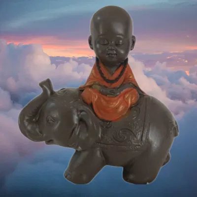 ELEFANTE CON MONJE 12 CM
